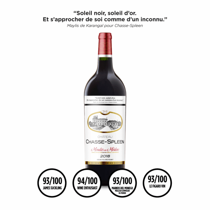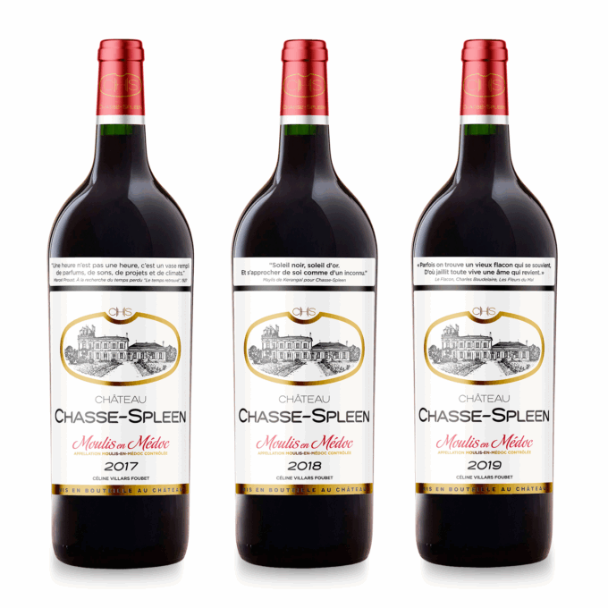 L’attaque est fraiche et expressive, puis la structure de tannins fins voire crayeux est très tramée mais bien enveloppée par de la souplesse en milieu de bouche. La très persistante finale est faite de ce rendez-vous classique pour Chasse-Spleen : le rappel de cacao.